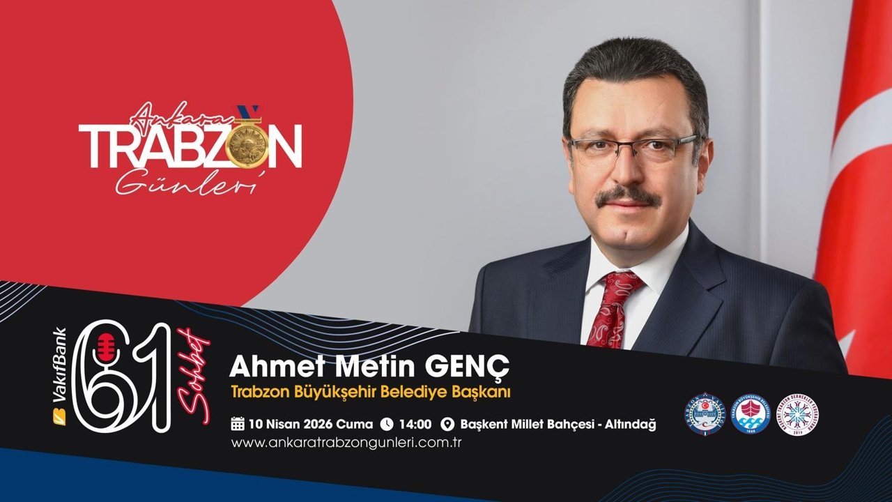 Ankara’da 9–12 Nisan 2026 tarihleri arasında düzenlenecek Trabzon Günleri kapsamında, Trabzon Büyükşehir Belediye Başkanı Ahmet Metin Genç de Vakıfbank 61 Sohbet programlarında kentin vizyonuna ilişkin değerlendirmelerde bulunacak.