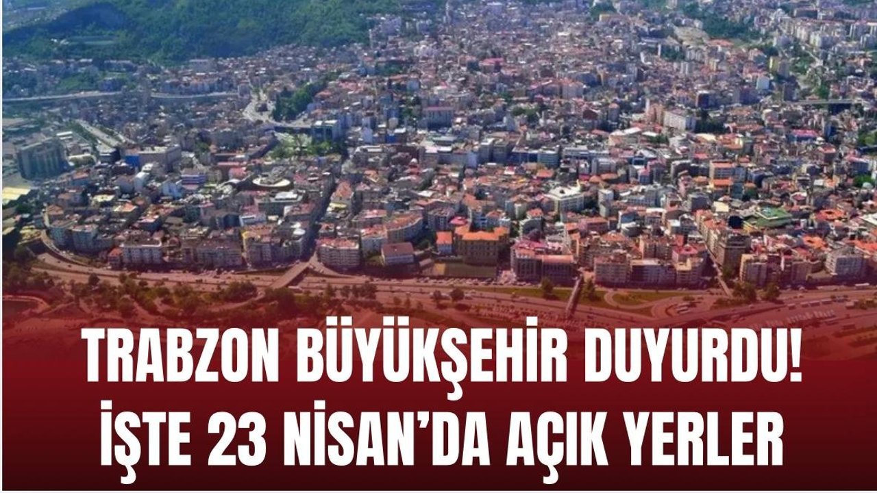 Trabzon Büyükşehir Belediyesi, 23 Nisan Ulusal Egemenlik ve Çocuk Bayramı kapsamında şehir genelinde uygulanacak hizmet düzenlemelerini duyurdu.Trabzon’da 23 Nisan Ulusal Egemenlik ve Çocuk Bayramı dolayısıyla belediye hizmetlerinde uygulanacak düzenlemeler belli oldu. Trabzon Büyükşehir Belediyesi tarafından yapılan bilgilendirmede, ulaşım, sosyal tesisler ve otoparklara ilişkin önemli detaylara yer verildi.