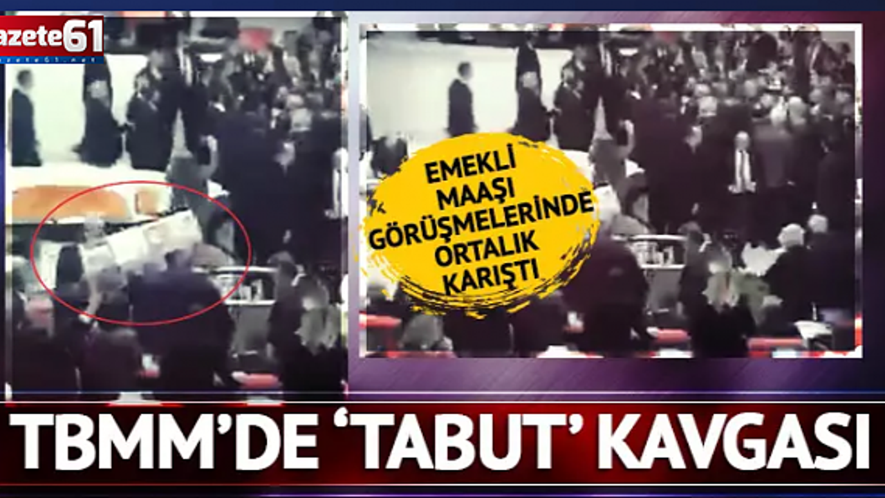 Emekli maaşlarına ilişkin kanun teklifinin görüşüldüğü Meclis Genel Kurulu’nda, CHP’li vekillerin kürsüye tabut getirmesi üzerine AKP ve CHP milletvekilleri arasında kavga çıktı.