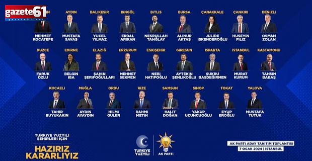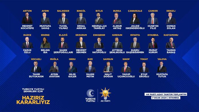 Cumhurbaşkanı Erdoğan, İBB adayı ile birlikte 11'i büyükşehir ve 15'i il olmak üzere toplam 26 adayı resmen duyurdu. Cumhurbaşkanı Erdoğan, açıklamalarda bulundu: "Yeniden İstanbul. Hazır mıyız? Aziz milletim sevgili İstanbullular, sizleri kalbi duygularımla muhabbetle selamlıyorum. Teşkilat mensuplarımıza buradan selam ve sevgilerimizi gönderiyorum. Her birinize şükranlarımı sunuyorum.