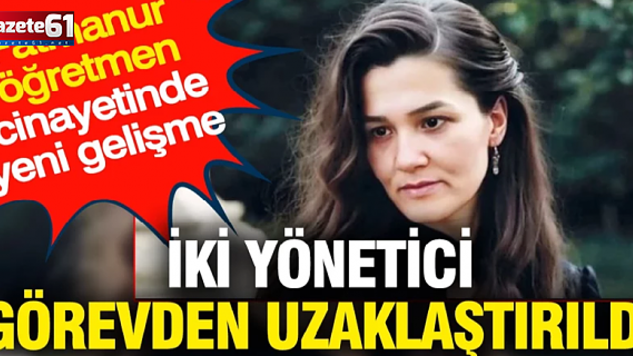 İstanbul Çekmeköy’de öğrencisi tarafından katledilen Fatma Nur Çelik tüm ülkeyi yasa boğmuştu. Olayla ilgili katil zanlısı öğrenci tutuklanırken, kan donduran olaya ilişkin yeni bir gelişme yaşandı. Çekmeköy İlçe Milli Eğitim Müdürü Mustafa Akhan ile Taşdelen Borsa İstanbul Mesleki ve Teknik Anadolu Lisesi Müdürü Fatih Polat görevden uzaklaştırıldı.
