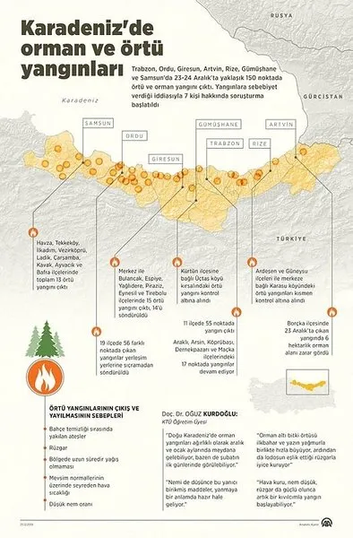 Tarım ve Orman Bakanı Bekir Pakdemirli, Karadeniz'deki orman yangınları ile ilgili olarak, "38 noktada yangın söndü. 17 noktada devam ediyor. Olumsuz hava şartları çalışmaları zorlaştırıyor. Toplamda 260 hektar alan zarar gördü.7 kişi hakkında adli işlem uygulandı." ifadelerini kullandı.