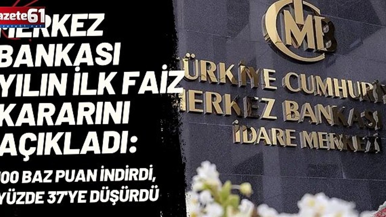 Türkiye Cumhuriyet Merkez Bankası, politika faizini 100 baz puan indirerek, yüzde 38'ten yüzde 37’ye düşürdü. Kurul ayrıca, gecelik vadede borç verme faiz oranını yüzde 41'den yüzde 40’a, gecelik vadede borçlanma faiz oranını da yüzde 36,5'tan yüzde 35,5’e indirdi.