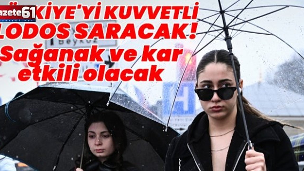 Meteoroloji'den yapılan son hava durumu tahminlerine göre; Türkiye kuvvetli lodosun etkisi altında. 11 il için sarı kodlu uyarı yayınlanırken, rüzgarın hızı zaman zaman 80 km'yi bulması bekleniyor. Marmara, Ege, Akdeniz, İç Anadolu, Batı ve Orta Karadeniz ile Güneydoğu Anadolu bölgeleri sağanak yağmurlu, İç Anadolu'nun kuzey ve doğusu ile Doğu Anadolu'nun büyük bölümü kar yağışlı olacak. Lodosun etkisiyle kuzey, iç ve batı kesimlerde 3 ila 5 derece artması bekleniyor.