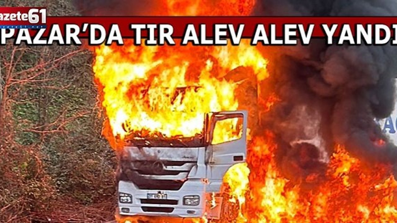 Rize Pazar Melyat mevkii Karadeniz Sahil Yolunda mandalina yüklü TIR alev alev yandı. Rize'nin Pazar ilçesinde seyir halindeyken arızalanan tır alev alev yandı.