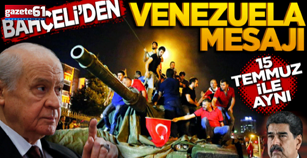 ABD'nin Venezuela'ya saldırısını 15 Temmuz darbe girişimine benzeten Bahçeli, ABD'nin 15 Temmuz'da Türkiye'de netice alamadığını, bugün Venezuela'da benzer bir girişimde bulunduğunu söyledi.