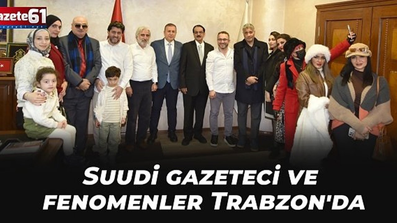 Suudi Arabistanlı gazeteci ve sosyal medya fenomenleri Trabzon'un tarihi ve doğal güzelliklerini tanıtmak için şehre geldi.Trabzon Ticaret ve Sanayi Odası (TTSO) Meclis Üyesi Ahmet Akyüz'ün organizasyonuyla Trabzon'a gelen Suudi Arabistanlı gazeteci ve sosyal medya fenomenleri, TTSO Başkanı Erkut Çelebi'yi ziyaret etti, izlenimlerini paylaştı.
