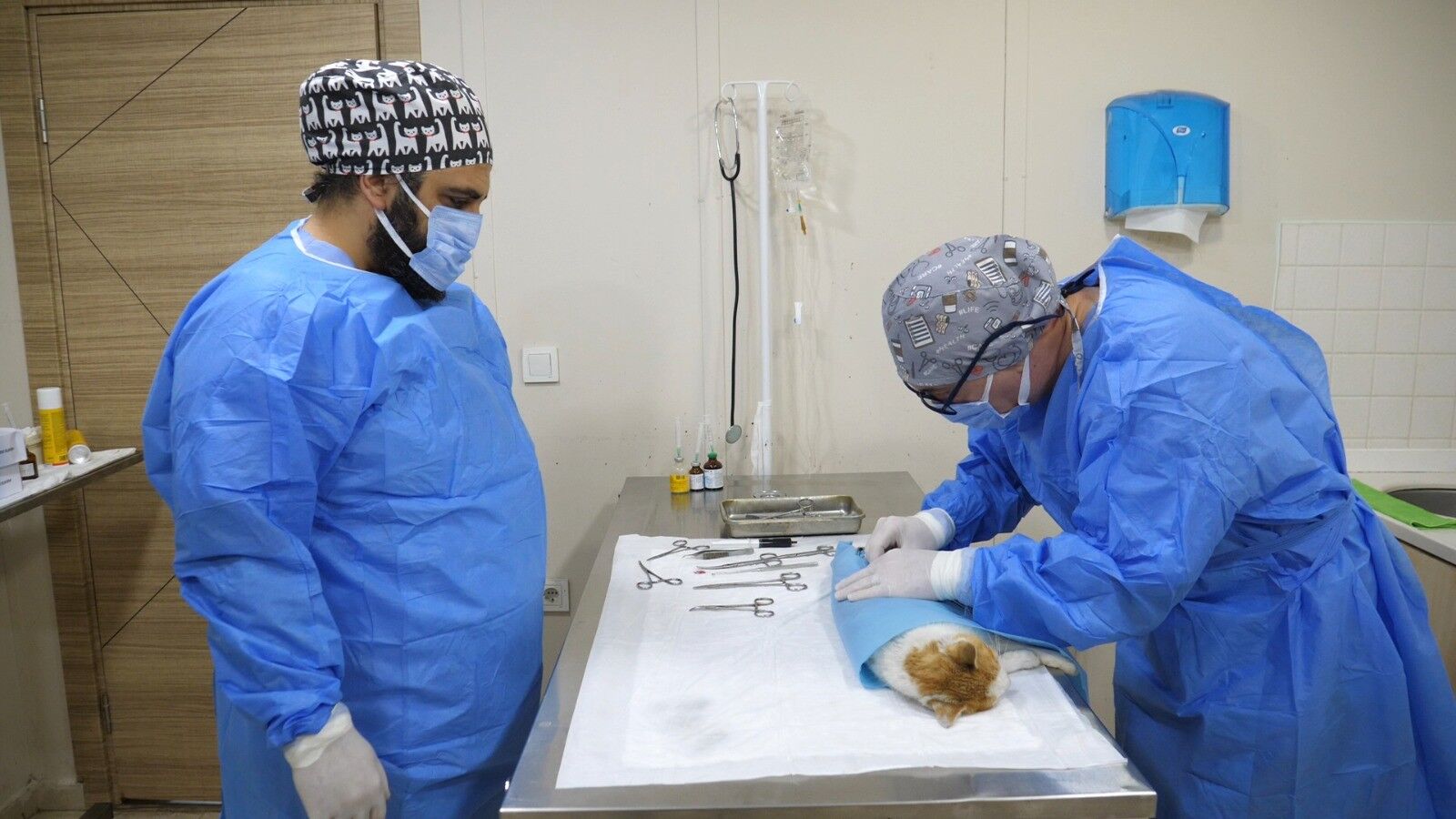Klinikte görevli veteriner hekim Ahmet Köz ise, amaçlarının kedi popülasyonunu bitirmek değil, daha sağlıklı bir ırk ortaya çıkarmak olduğunu dile getirerek, “Kliniğimizde rutin veteriner hizmetleri faaliyetlerini yürütmekteyiz. Arkadaşlarımızla birlikte sokak kedilerinin teşhis, tedavi ve kısırlaştırma işlemlerini yapmaktayız. Şu andaki operasyonumuz kısırlaştırma. Bizim burada en önemli faaliyetlerimizden biri kısırlaştırma. Kısırlaştırmayı ne kadar çok yaparsak popülasyonu da o kadar kontrol altına alarak, dışardaki hayvan ölümlerini o kadar azaltabiliyoruz. Amacımız burada hayvan ırkını bitirmek değil, aksine daha sağlıklı bir ırk ortaya çıkarmak ve sadece popülasyonu kontrol altına almak. Burada her türlü teşhis ve tedavi yapılıyor. Tamamen ücretsiz bir şekilde sadece sahipsiz sokak hayvanlarına, sokakta yaşayan hayvanlara hizmet vermekteyiz. Bütün bu işlemler bittikten sonra, kısırlaştırma ya da tedavisi bittikten sonra kediler tekrar ekiplerimiz tarafından alındıkları sokağa bırakılıyor” ifadelerini kullandı.