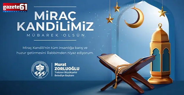 Trabzon Büyükşehir Belediye Başkanı Murat Zorluoğlu, Miraç Kandili için bir mesaj yayımladı.Trabzon Büyükşehir Belediye Başkanı Murat Zorluoğlu, Miraç Kandili dolayısıyla bir mesaj yayımladı. Hemşehrilerinin ve İslam âleminin Miraç Kandili'ni tebrik eden Başkan Zorluoğlu, bu mübarek gecenin tüm insanlığa hayırlar getirmesi temennisinde bulundu.