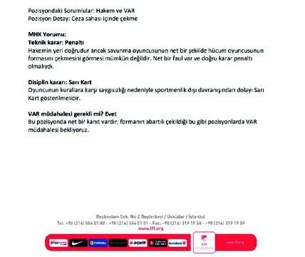 MHK Başkanı Zekeriya Alp'in onayıyla hakemler icin hazırlanan eğitim paketinde pozisyon için net penaltı ve sarı kart yorumu yapıldı. MHK aynı zamanda VAR hakeminin maçın hakemine, bu tip abartılı formadan çekme pozisyonlarında mutlaka müdahale etmesini beklediklerini ifade etti. Hatırlanacağı gibi ligin 16 .haftasında oynanan ve Cüneyt Çakır'ın yönettiği Fenerbahçe-Beşiktaş derbisinde, Kartal'ın verilmeyen penaltıları için hakemi haksız bulan ve bunu kamuoyuyla paylaşan MHK Başkanı Alp, bu sezon ikinci kez bir takımın net penaltısının verilmediği yönünde itirafta bulunmuş oldu.