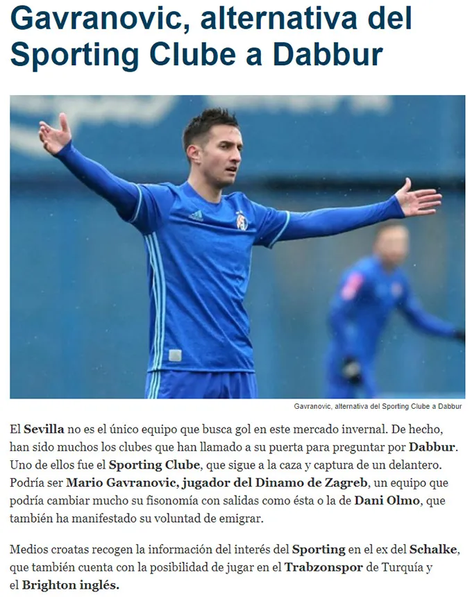 Gazete, Hırvat basının ise Gavranovic'i talip olan takımlar arasında Trabzonspor ve Sevilla'nın dışında Portekiz'den Sporting Lizbon'un ve İngiltere'den Brighton'un da olduğunu iddia etti. 1.75 boyundaki 30 yaşındaki Gavranovic, 2011 yılından Hırvat bir ailenin oğlu olmasına rağmen Lugano kentinde doğduğu için İsviçre Milli Takımı'nın formasını giyiyor. Dinamo Zagreb'le 1.5 yıllık daha anlaşması bulunan Garvanovic, bu sezon 15 maçta 3 gol atıp, 1 asist yaptı.