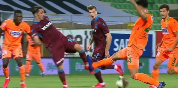 Trabzonspor'un Alanya ile oynadığı maçın 27. dakikasında tartışma çıkartan bir pozisyon yaşandı.