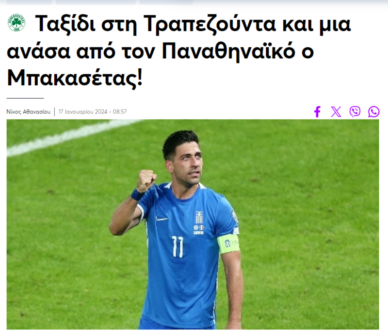 Trabzonspor ile sözleşme uzatmayan Bakasetas'ın yeni takımı belli olmak üzere. Yunan basınında yer alan haberde Bakasetas'ın Panathinaikos ile anlaştığı duyuruldu.
